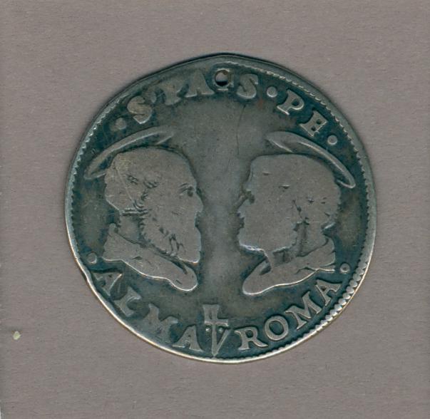 Testone met pauselijk wapen paus Clemens VII (1523-1534), kz. torso H. Petrus en H. Paulus