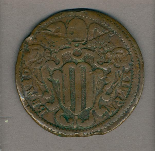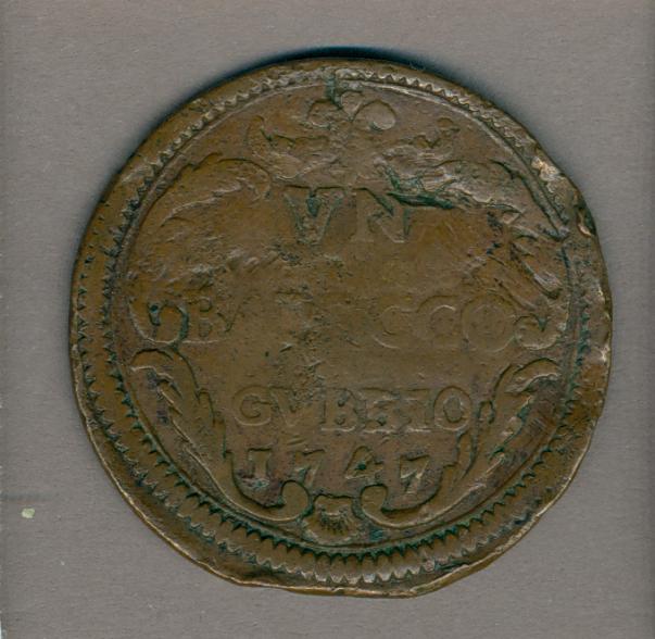 Baiocco met pauselijk wapen paus Benedictus XIV (1740-1758), kz. munteenheid