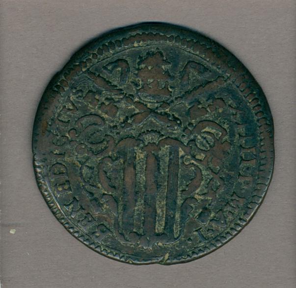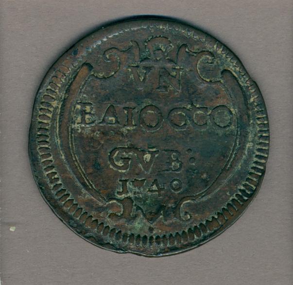 Baiocco met pauselijk wapen paus Benedictus XIV (1740-1758), kz. munteenheid