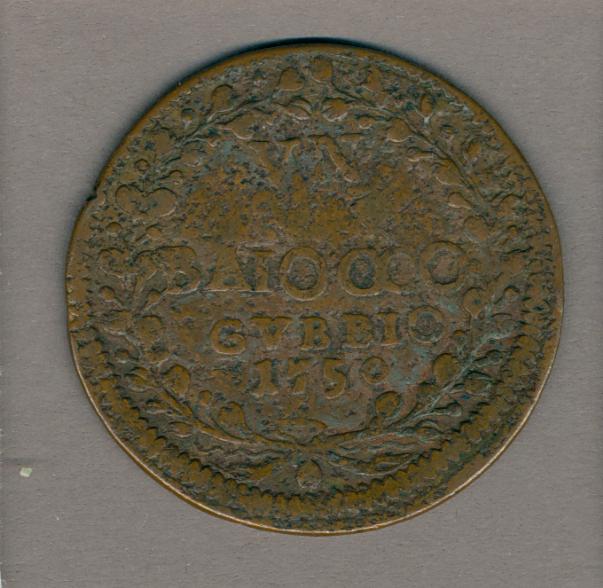 Baiocco met pauselijk wapen paus Benedictus XIV (1740-1758), kz. munteenheid