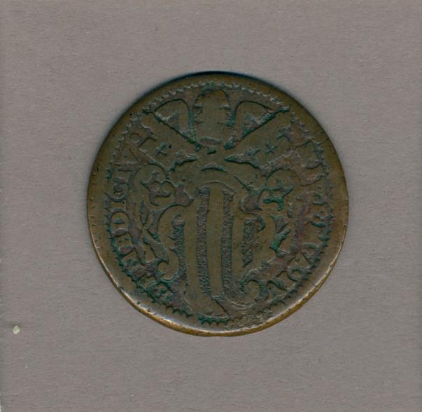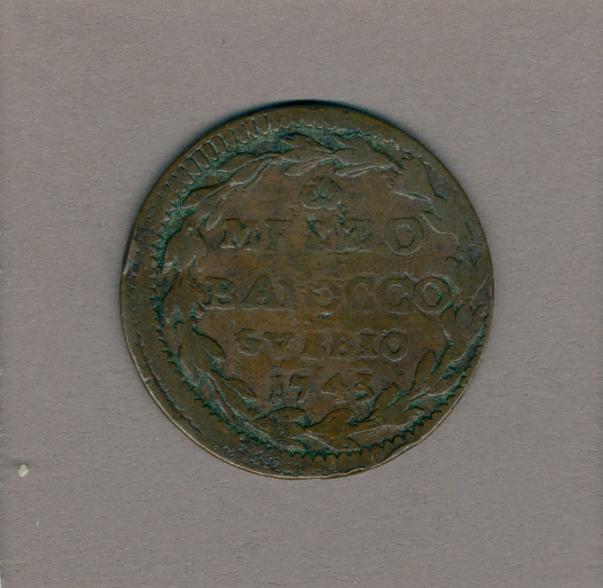 Halve baiocco met pauselijk wapen paus Benedictus XIV (1740-1758), kz. munteenheid