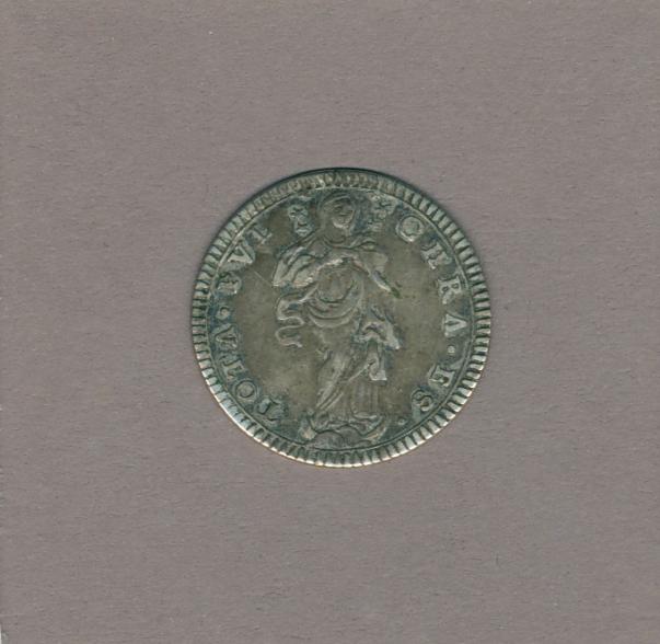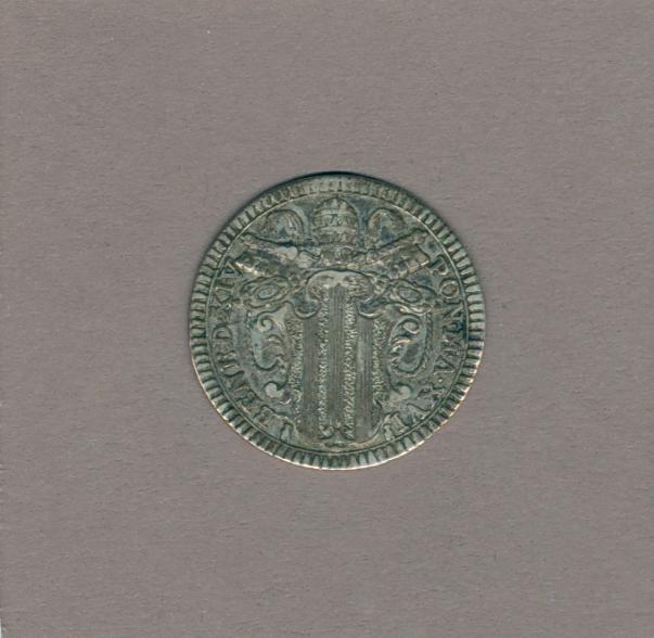 Pausmunt met pauselijk wapen paus Benedictus XIV (1740-1758), kz. Maria op de maansikkel