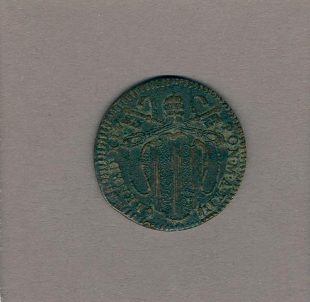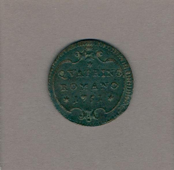 Quatrino met pauselijk wapen paus Benedictus XIV (1740-1758), kz. munteenheid