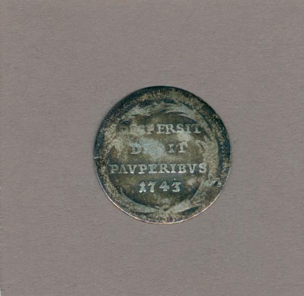 Pausmunt met pauselijk wapen paus Benedictus XIV (1740-1758), kz. opschrift