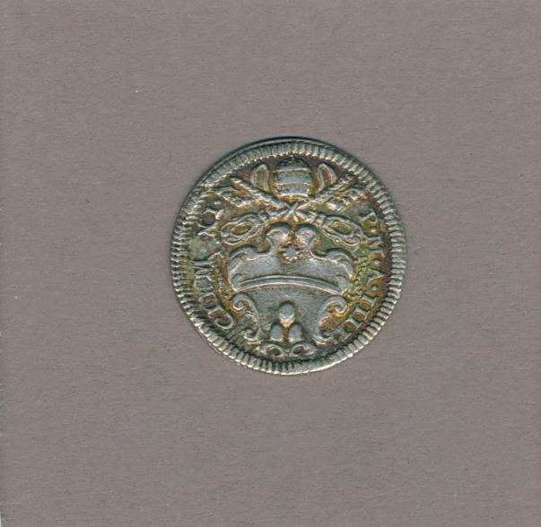 Pausmunt met pauselijk wapen paus Clemens XI (1700-1721), kz. opschrift