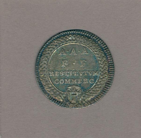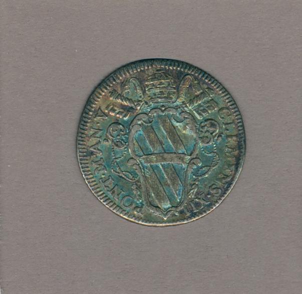 Pausmunt met pauselijk wapen paus Clemens XII (1730-1740), kz. opschrift