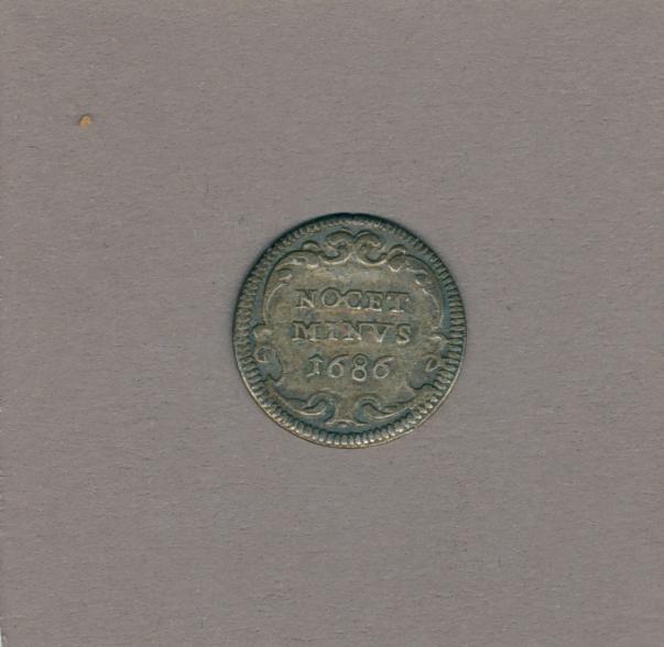 Pausmunt met pauselijk wapen paus Innocentius XI (1676-1689), kz. opschrift
