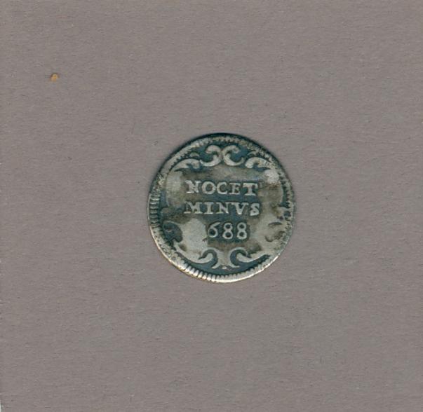 Pausmunt met pauselijk wapen paus Innocentius XI (1676-1689), kz. opschrift