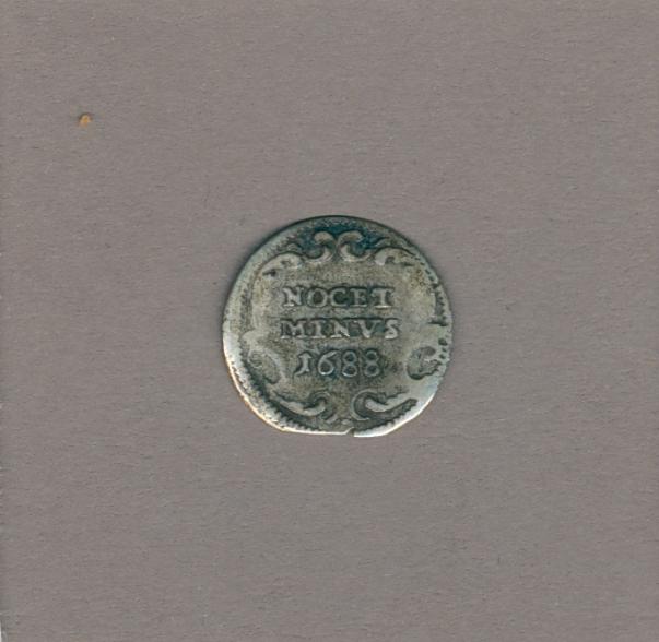 Pausmunt met pauselijk wapen paus Innocentius XI (1676-1689), kz. opschrift