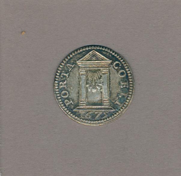 Pausmunt ter gelegenheid van heilig jaar met portret paus Clemens X (1670-1676), kz. gesloten Heilige deur