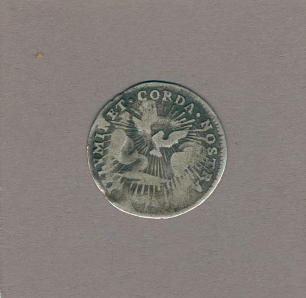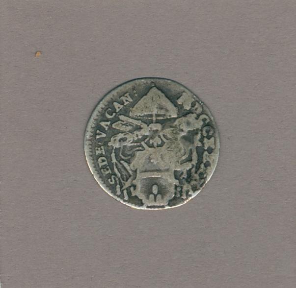 Pausmunt sede vacante met Camerlengo kardinaals wapen Annibale Albani (1740), kz. Heilige Geest