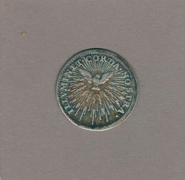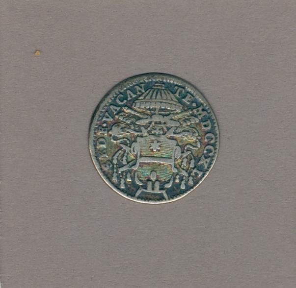 Pausmunt sede vacante met Camerlengo kardinaals wapen Annibale Albani (1740), kz. Heilige Geest