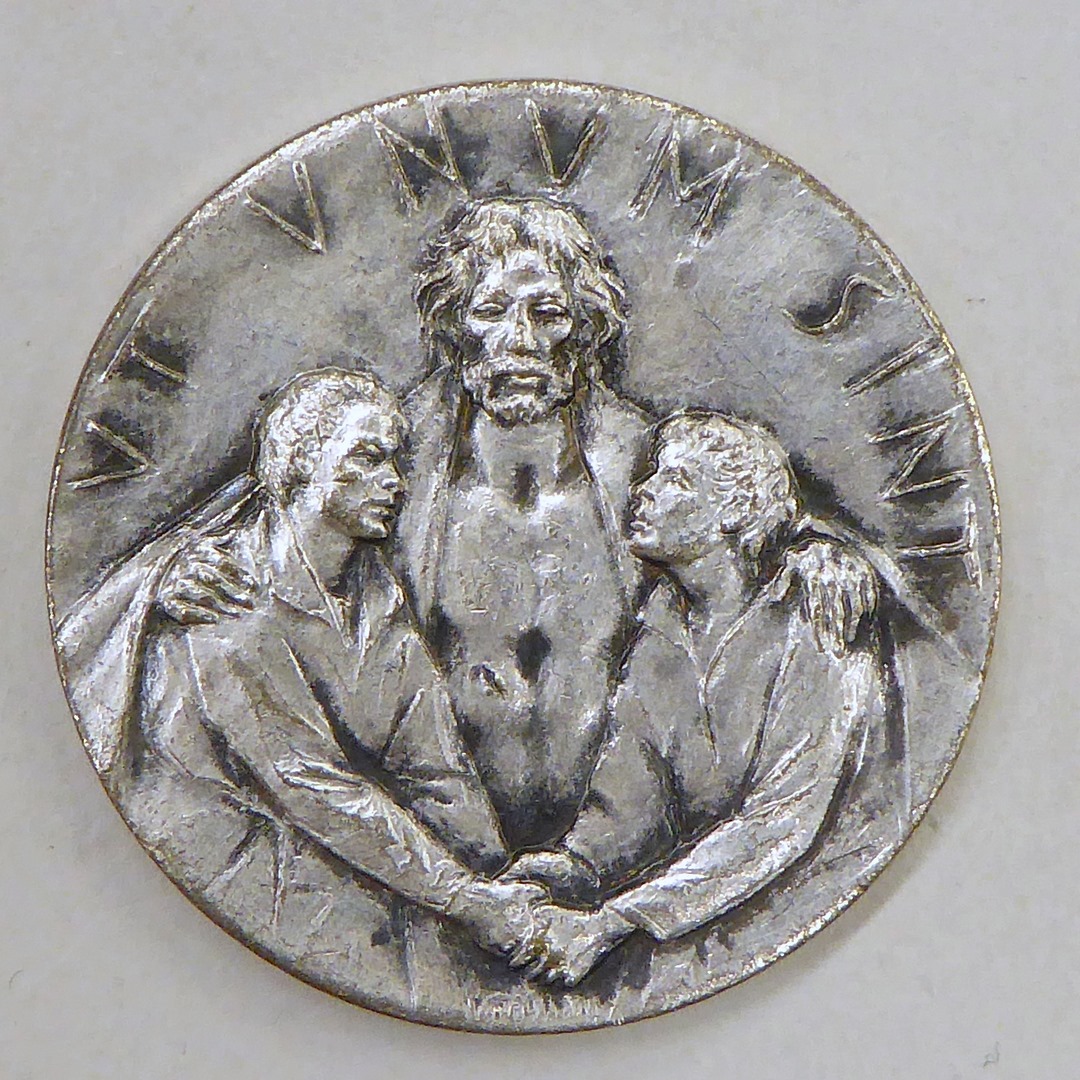 Gedenkpenning H. Jaar 1975 met "Ut unum sint" en Emmausgangers, kz. vier aartsbasilieken