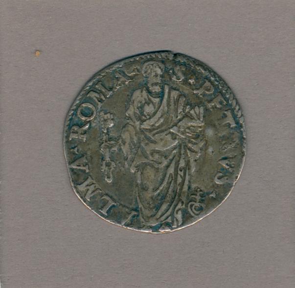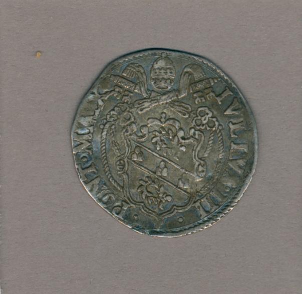 Pausmunt met pauselijk wapen paus Julius III (1550-1555), kz. H. Petrus