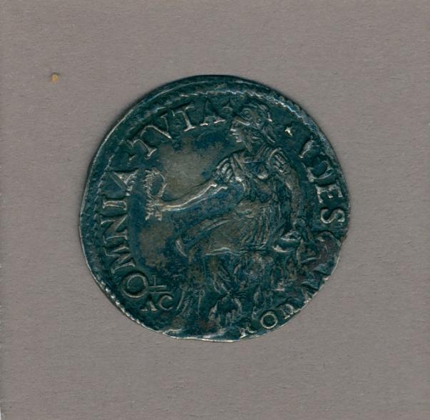 Pausmunt met portret van paus Julius III (1550-1555), kz. verpersoonlijking van de stad Rome