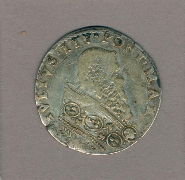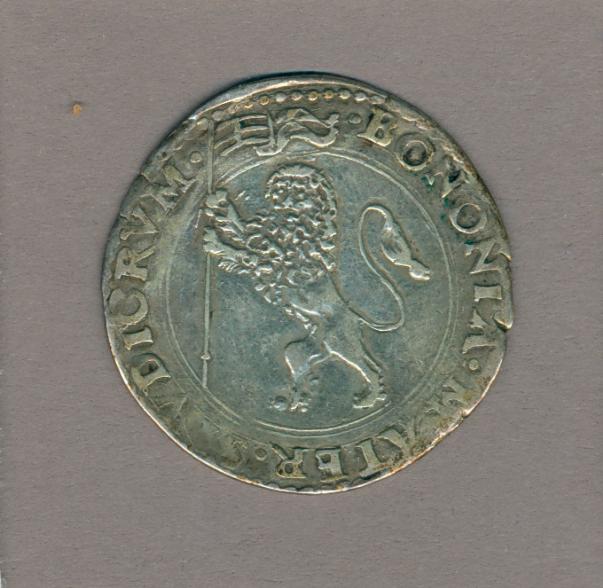 Pausmunt met portret van paus Julius III (1550-1555), kz. leeuw met vaandel van Bologna