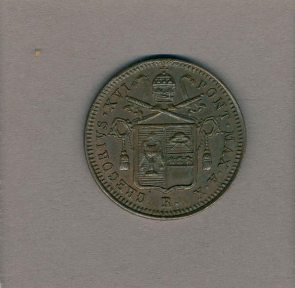 Halve baiocco met pauselijk wapen paus Gregorius XVI (1831-1846), kz. munteenheid