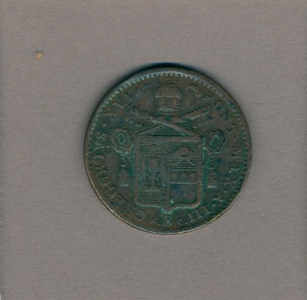 Halve baiocco met pauselijk wapen paus Gregorius XVI (1831-1846), kz. munteenheid