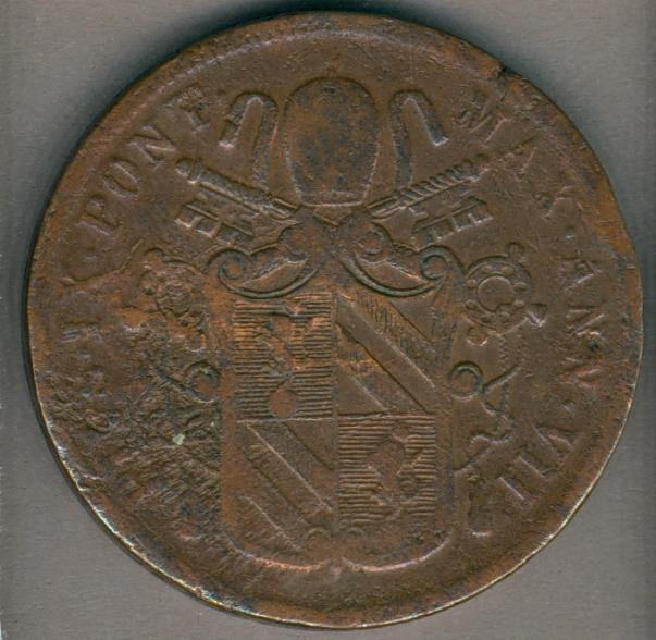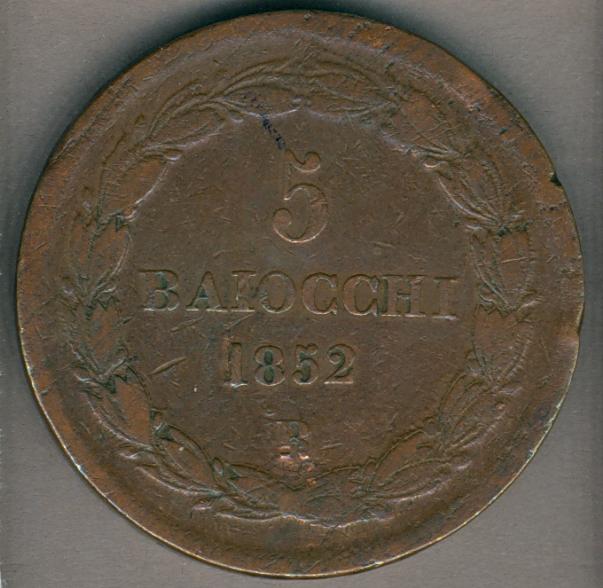 Vijf baiocchi met pauselijk wapen paus Pius IX (1846-1878, kz. munteenheid
