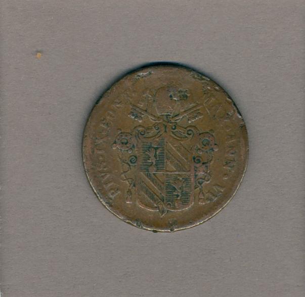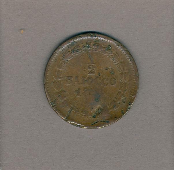 Halve baiocco met pauselijk wapen paus Pius IX (1846-1878), kz. munteenheid