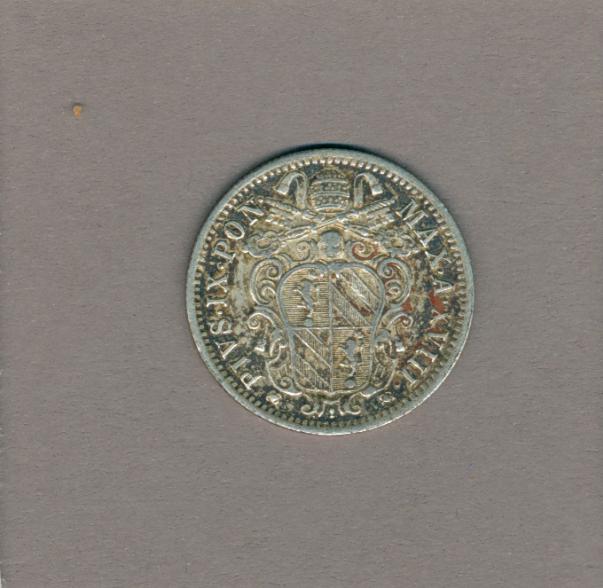 Tien baiocchi met pauselijk wapen paus Pius IX (1846-1878), kz. munteenheid
