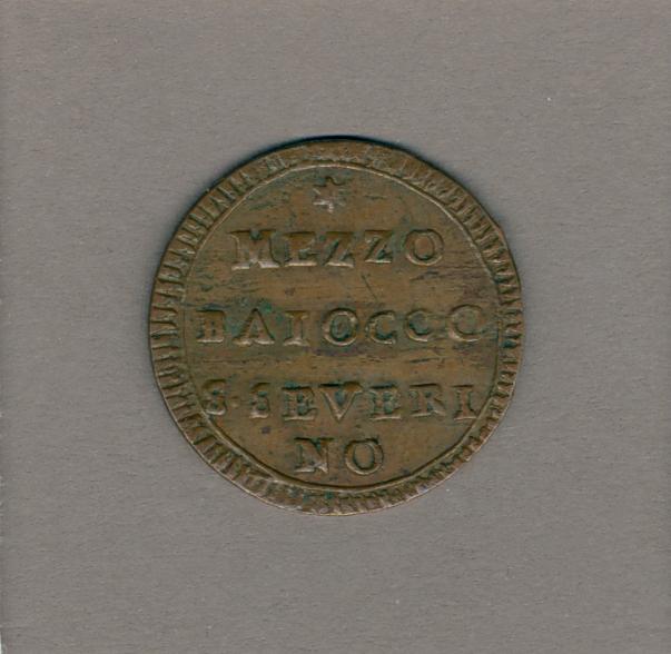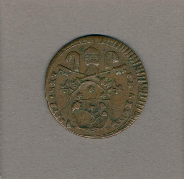 Halve baiocco met pauselijk wapen paus Pius VI (1775-1799), kz. munteenheid
