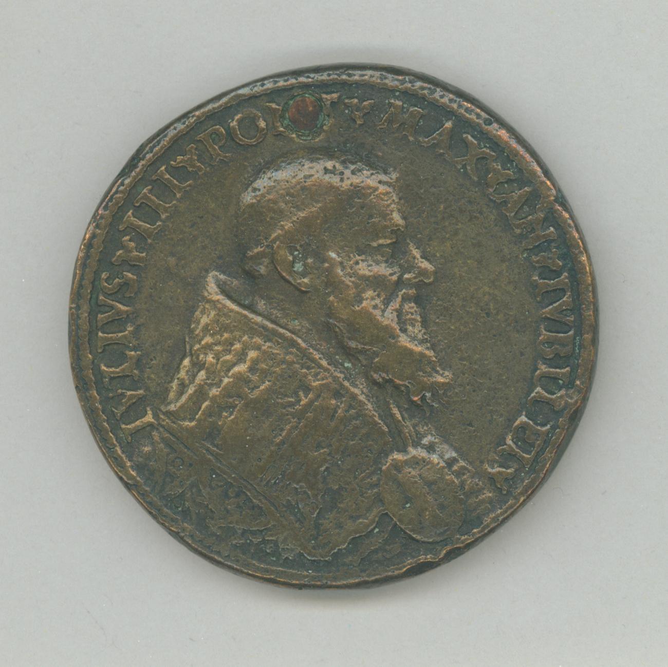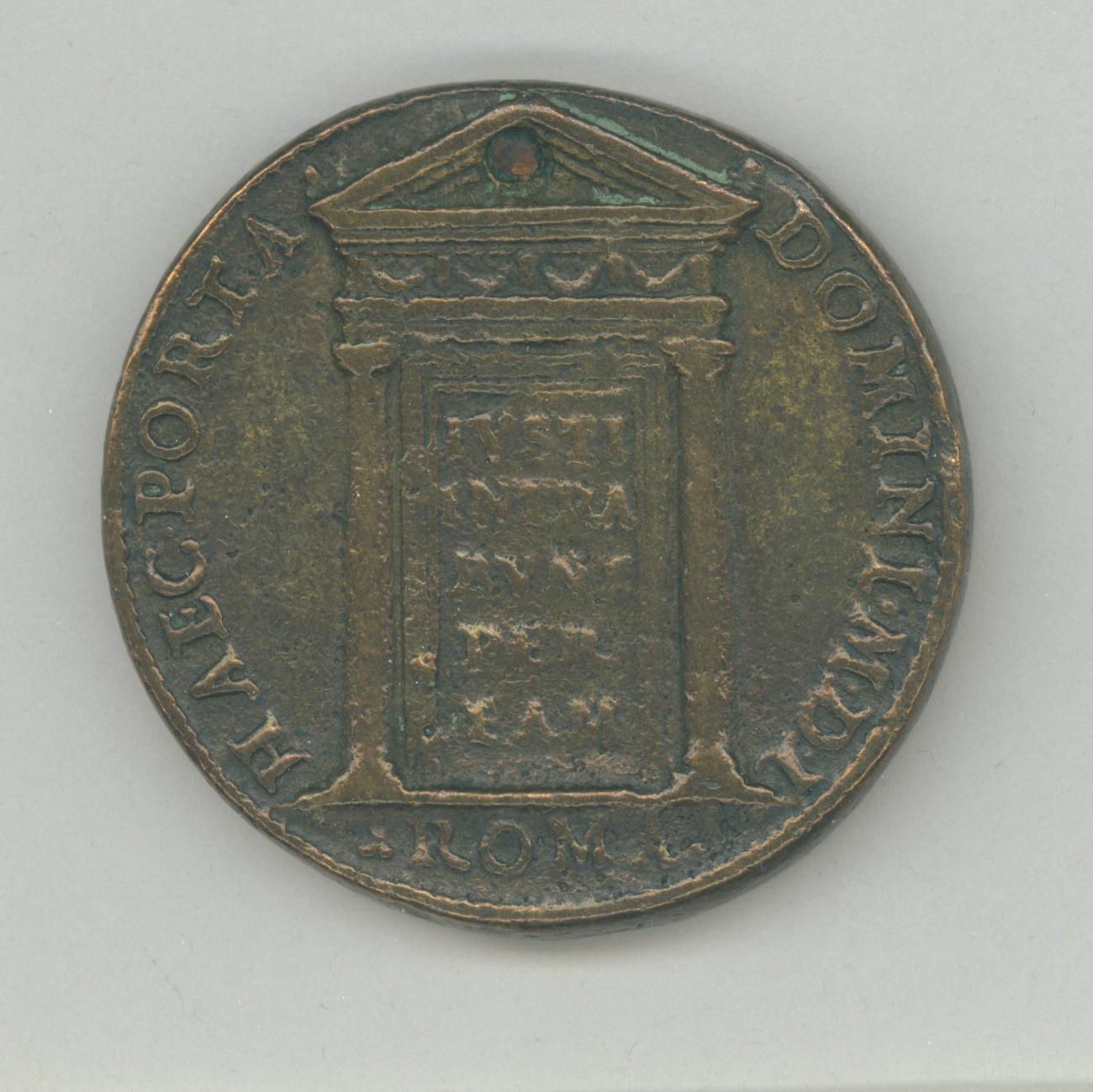 Pauspenning met portret paus Julius III (1550-1555), met "... AN IV", kz. H. deur met opschrift