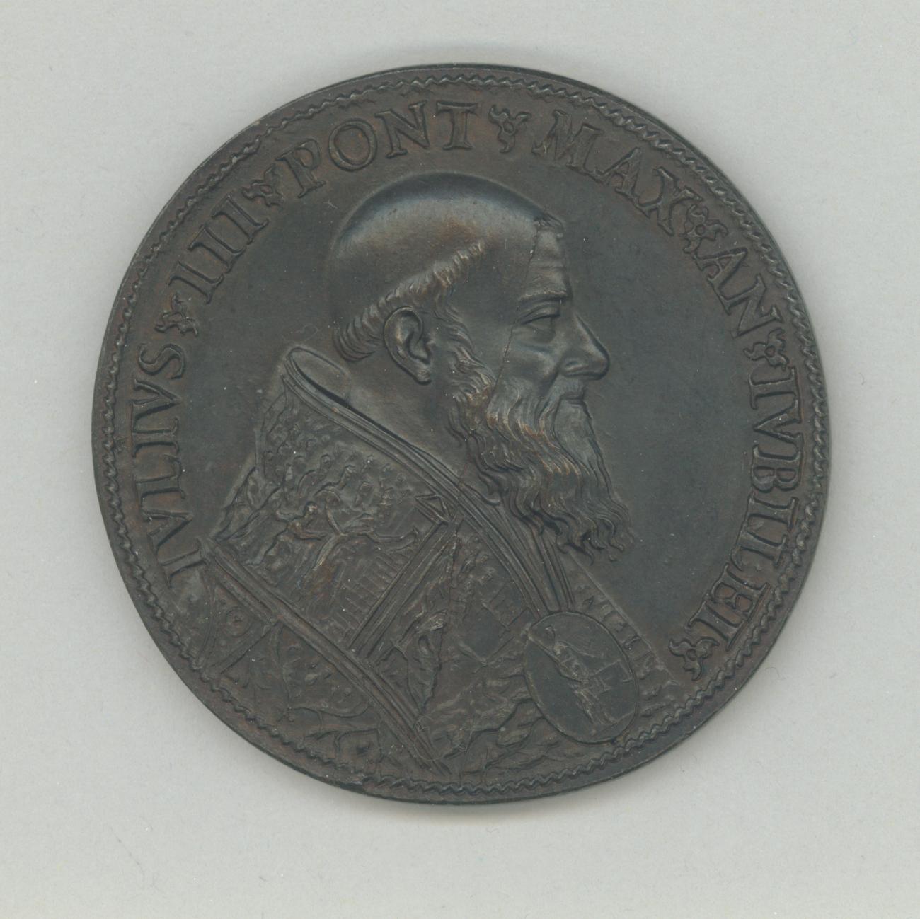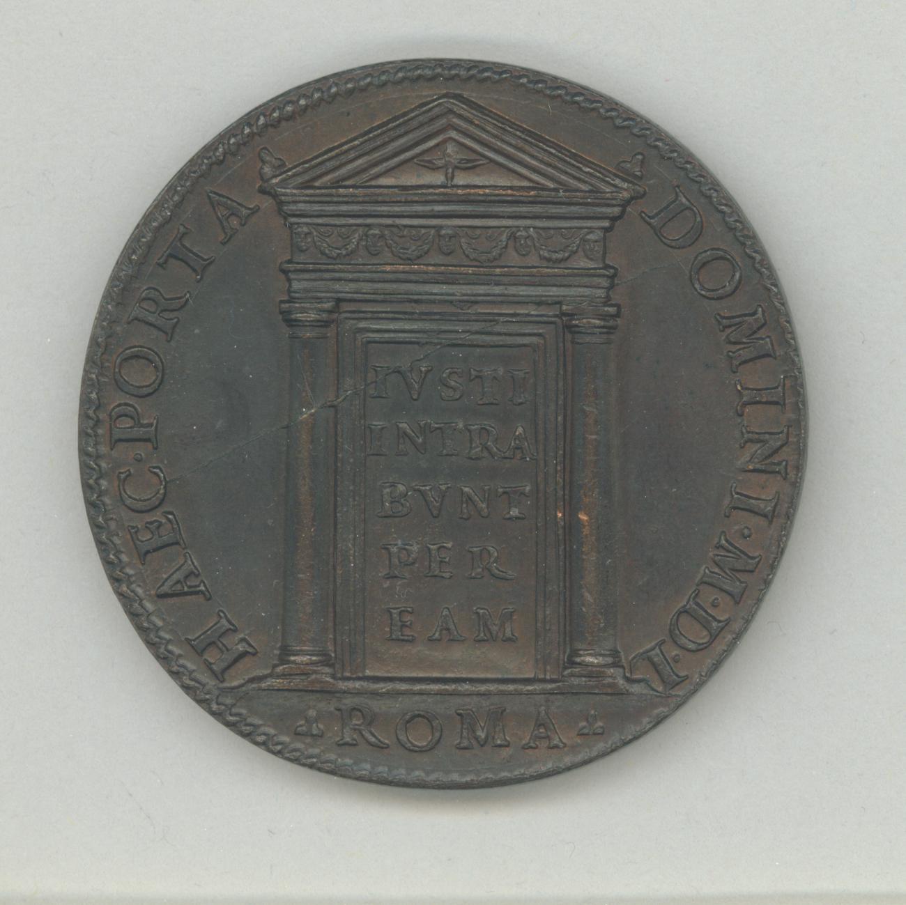 Pauspenning met portret paus Julius III (1550-1555), met "... AN IV", kz. H. deur met "Iuste intrabunt per eam"