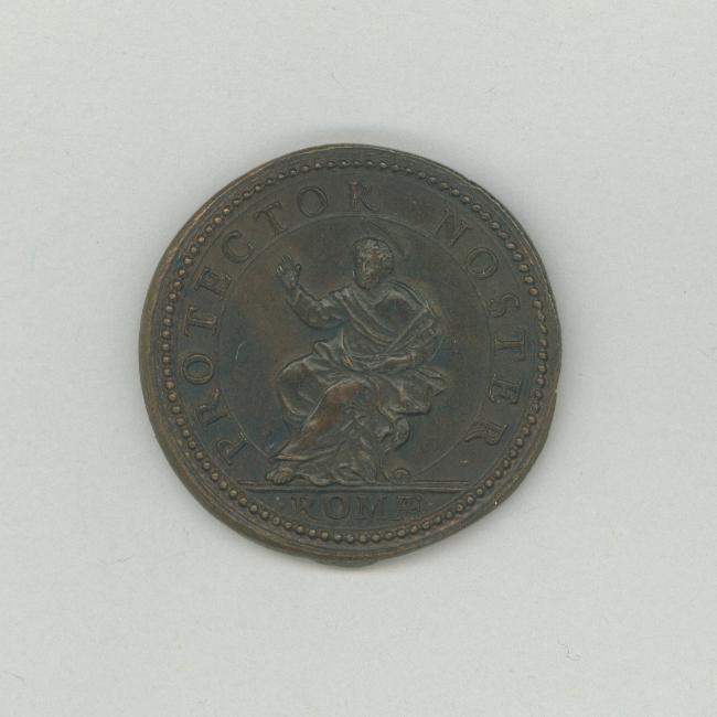 Pauspenning met portret paus Clemens IX (1667-1669), met "... A III", kz. St. Petrus, gezeten, met twee sleutels