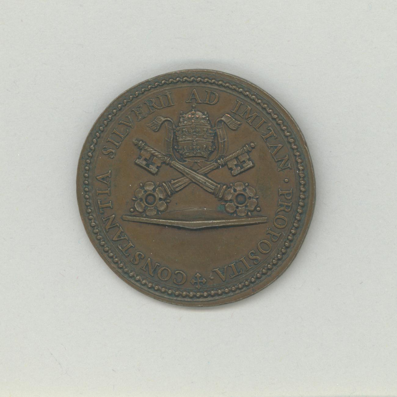 Pauspenning met portret paus Clemens IX (1667-1669), kz. randtekst en twee gekruiste sleutels en tiara