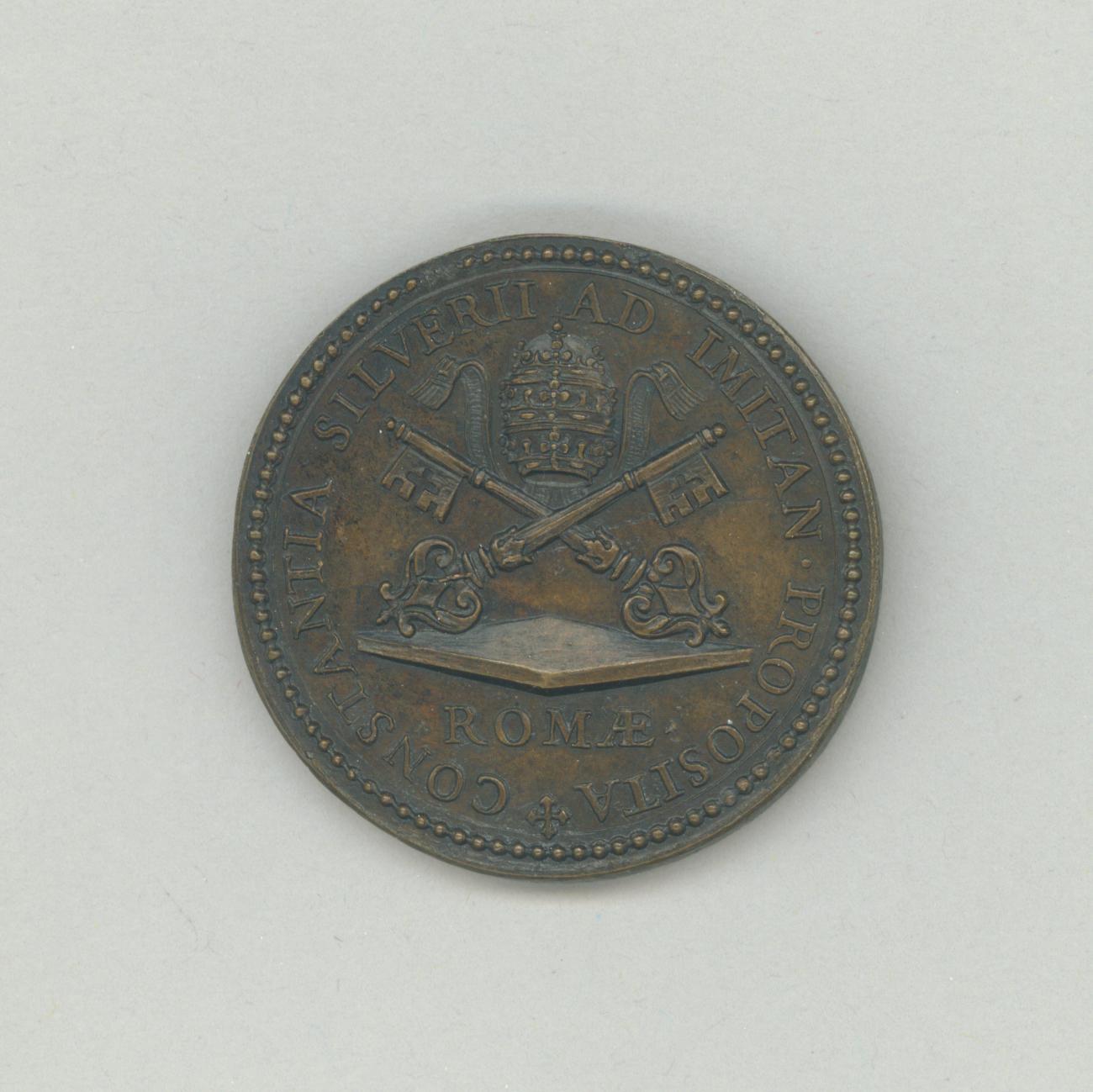 Pauspenning met portret paus Clemens IX (1667-1669), kz. twee gekruiste sleutels en tiara