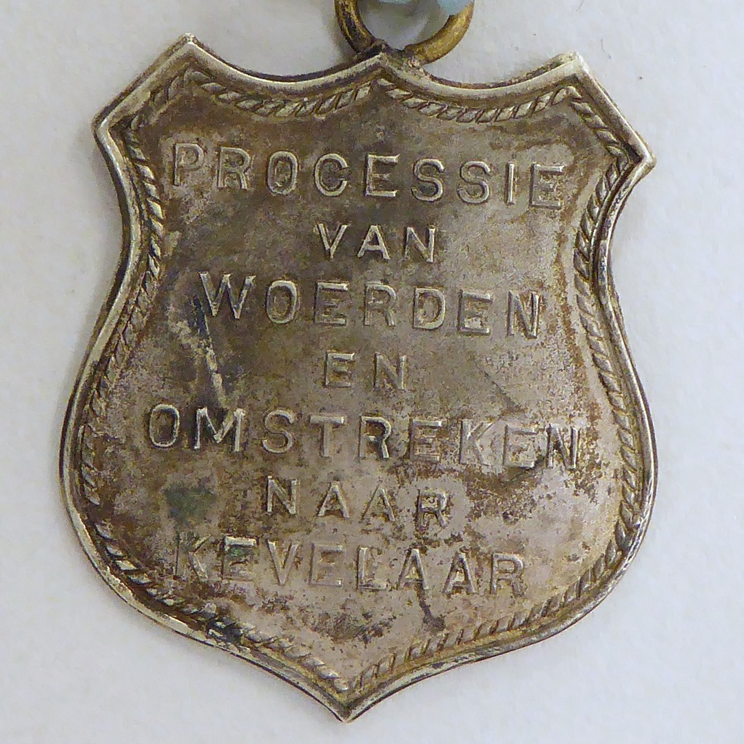 Broederschapsmedaille, wapenschild met "Processie van Woerden en omstreken naar Kevelaar", kz. blanco