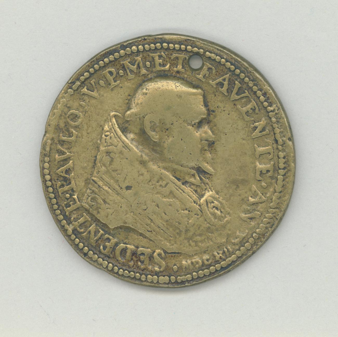 Pauspenning met portret paus Paulus V (1605-1621), kz. kerk, St. Carolus Borromeus op wolk