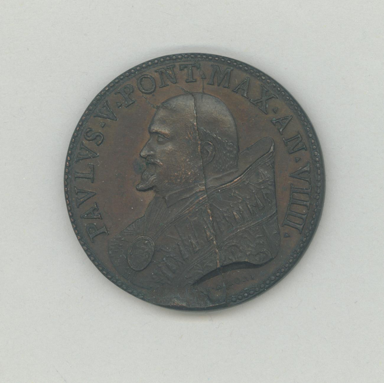 Pauspenning met portret paus Paulus V (1605-1621), met "... AN VIIII", kz. kapel in de Santa Maria Maggiore
