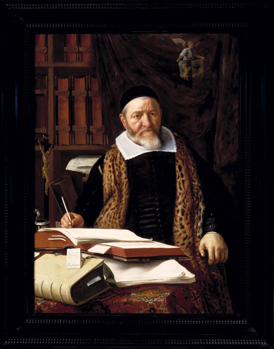 Gemonogrammeerd en gedateerd op het papiertje tussen de bladzijden van het boek op de voorgrond: CL • M • f [..] 1647 (CL ineen). Op dit boek een kaartje met de tekst: Eximio viro / D Leonardo / Mario STD / Amstelredami (Aan de excellente heer Leonardus Marius, doctor in de heilige godgeleerdheid in Amsterdam). ...