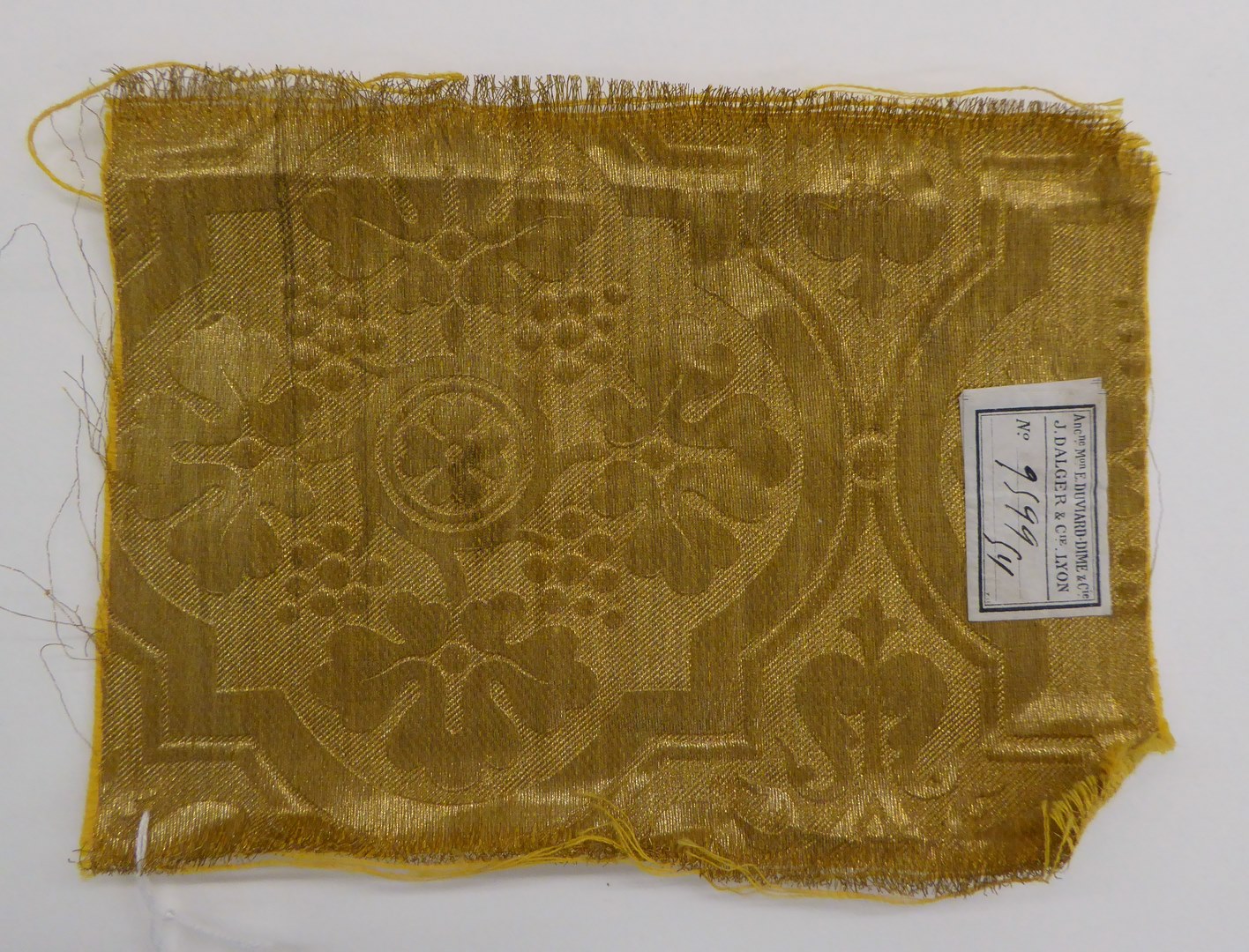 Brochéweefsel van gouddraad met ingeweven druivenbladeren in vierpas, nr. 959..