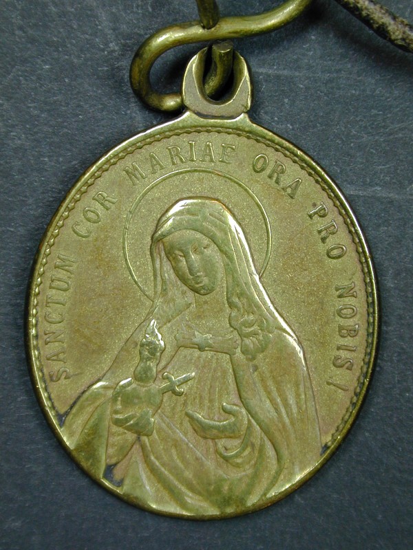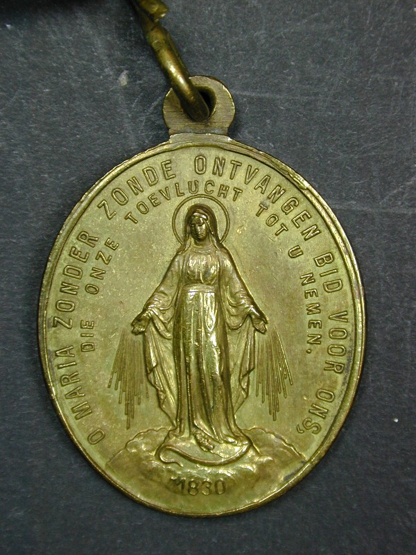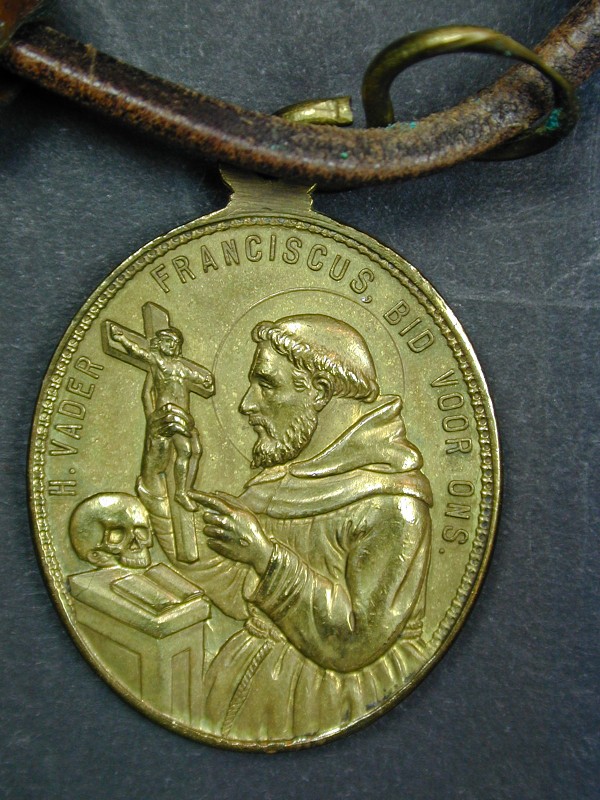 Ordekleding missionerende orde franciscanessen van Aerdenhout: rozenkrans met kruisbeeld en twee medailles met o.a. "H. vader Franciscus ..."