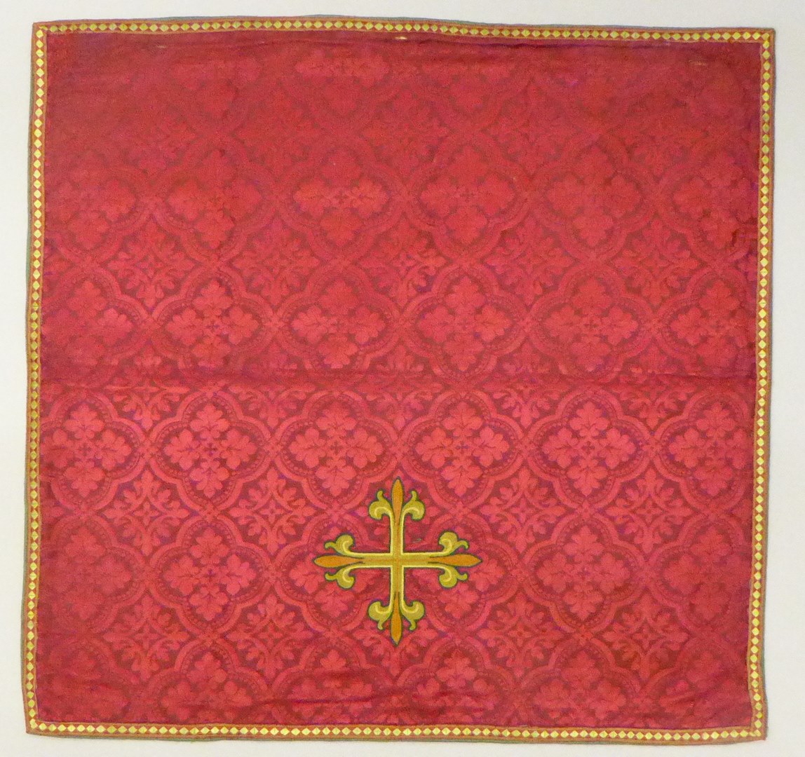Rood kelkvelum met ingeweven vierpassen en geel leliekruis