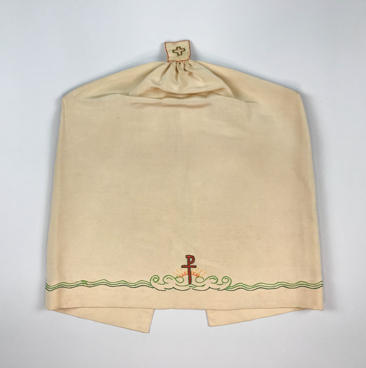 Wit ciborievelum geborduurd met Christusmonogram en golfmotief