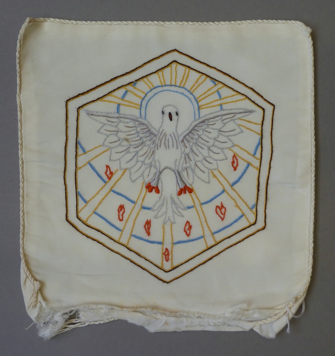 Witte palla geborduurd met duif: uitstorting van de H. Geest