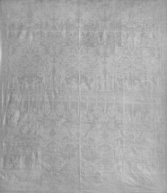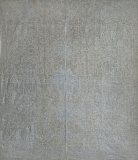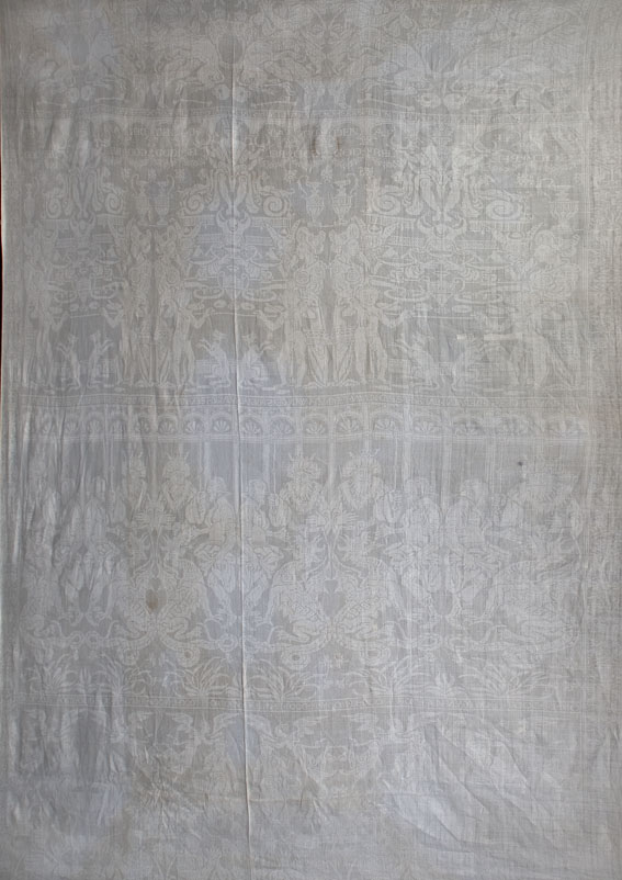 Tafellaken met Daniël, Bel en de draak van Babylon, gebruikt als avondmaalskleed