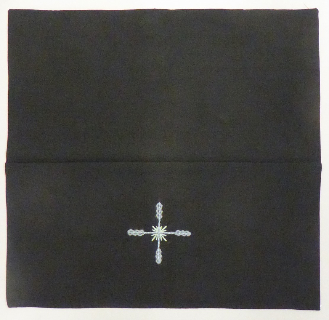 Zwart kelkvelum met blauw-groen kruisje