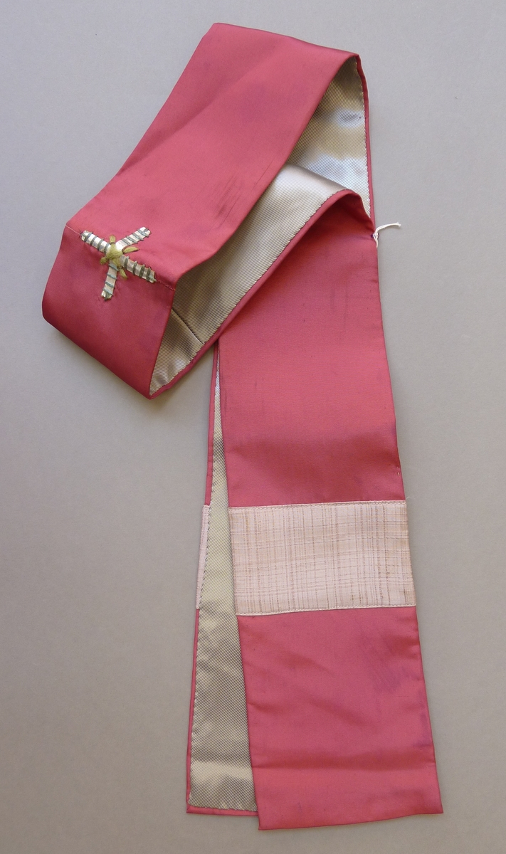 Roze manipel met zilverleren kruisje en lila banen