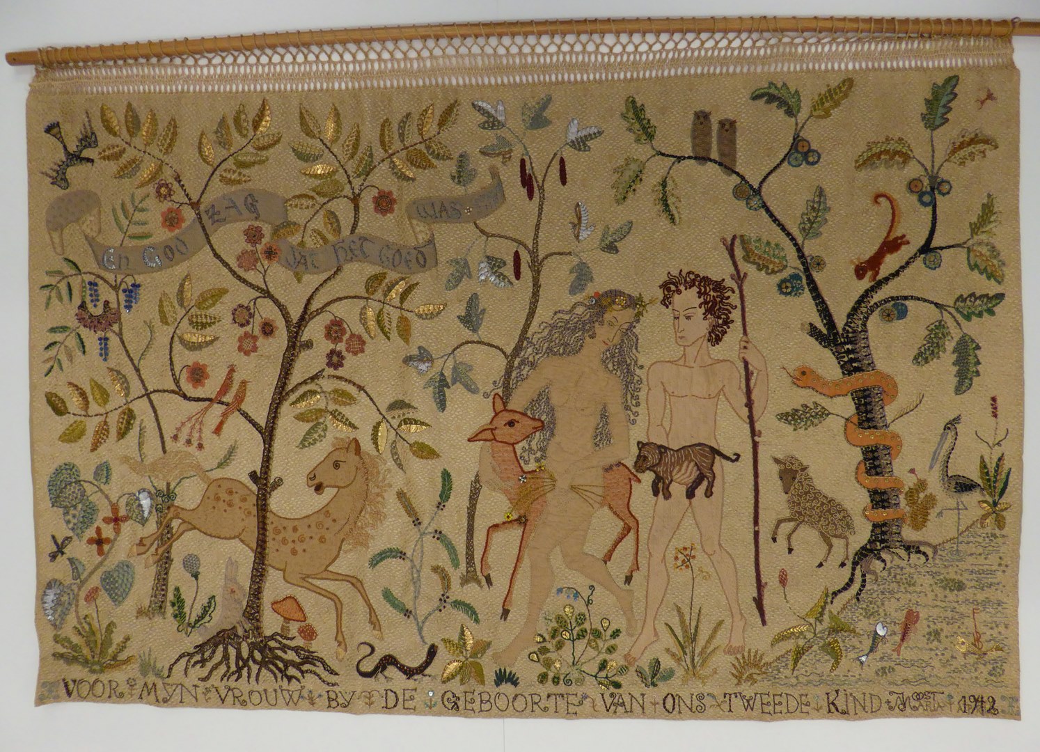 Wandkleed met Adam en Eva in het paradijs