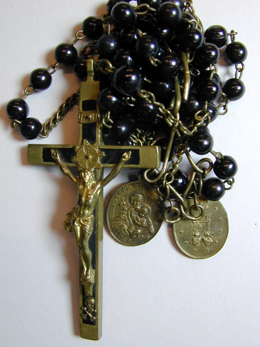 Ordekleding missionerende orde kleine zusters van de Heilige Jozef: rozenkrans en kruis met corpus