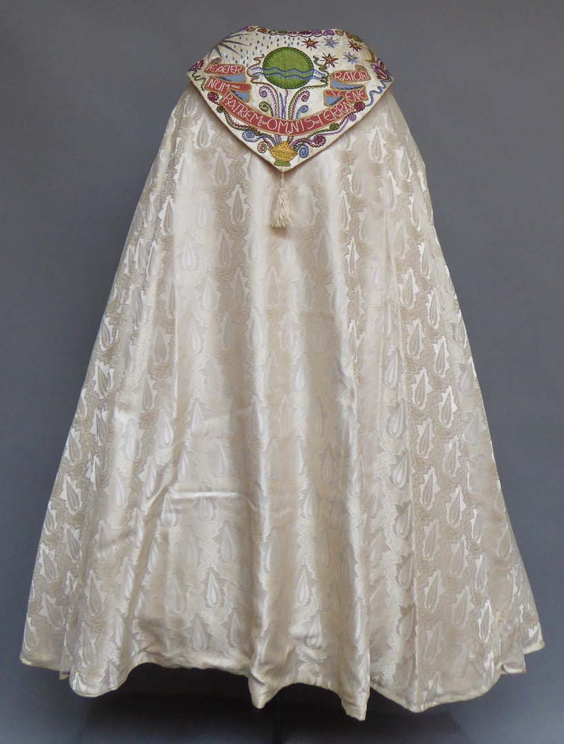 Witte koorkap met afbeelding schepping op schild