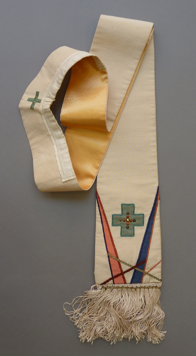 Witte stola met abstracte applicaties en groene kruisjes