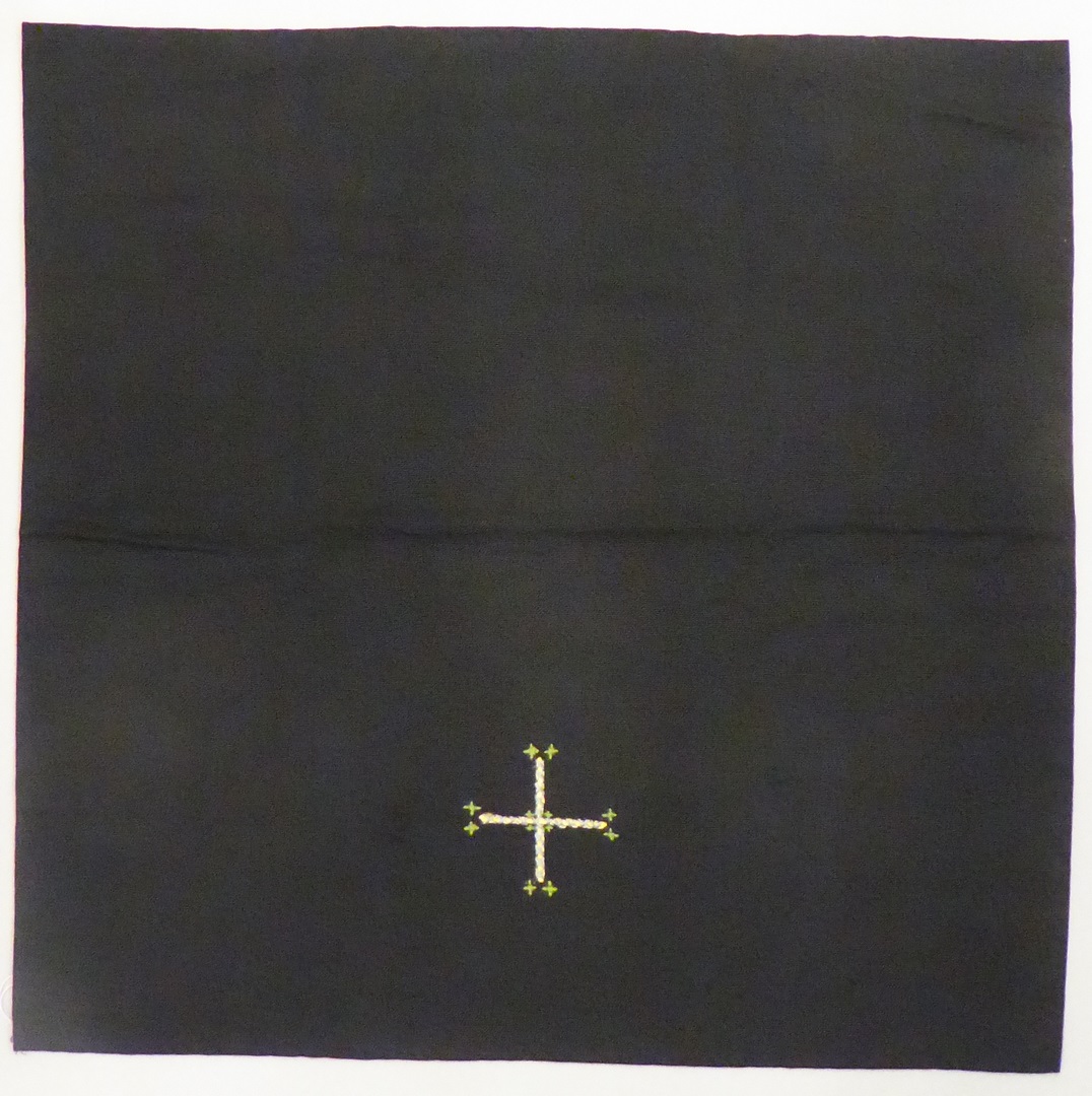 Zwart kelkvelum met geel-grijs-groen kruisje