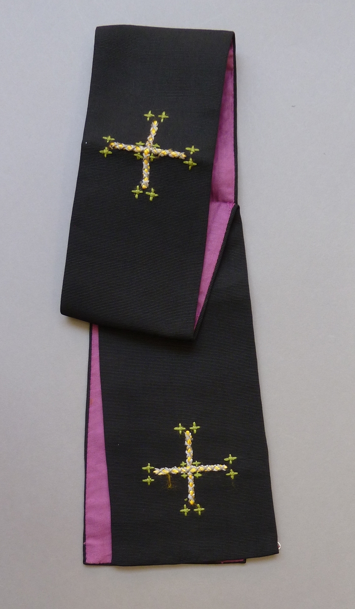 Zwarte manipel met geel-grijs-groen kruisje