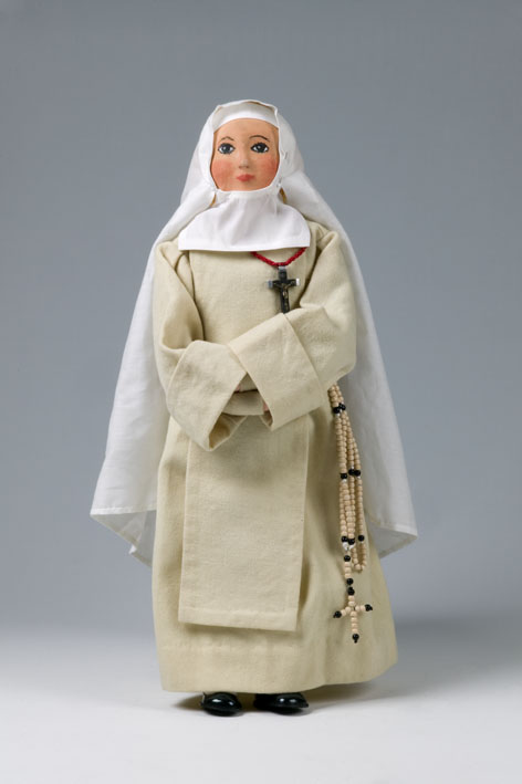 Modelpop met ordekleding missionerende orde witte zusters, met rozenkrans naar StCC t17b